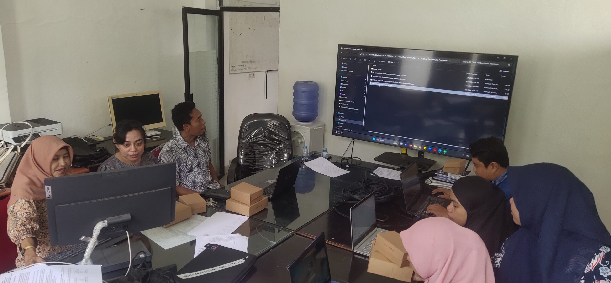 Mereka bersama-sama membahas daftar data yang merupakan data statistik sektoral BPSDMD tahun 2023.