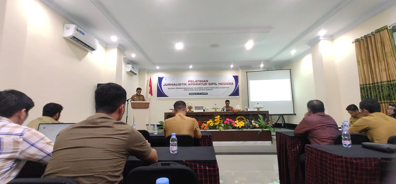 Mamuju – Merespon perkembangan digitalisasi dan pentingnya branding terkait pelaksanaan kegiatan yang ada di OPD, Badan Pengembangan Sumber Daya Manusia Daerah Provinsi Sulawesi Barat melaksanakan Pelatihan Jurnalistik bagi Aparatur Sipil Negara (ASN) lingkup Pemerintah Provinsi Sulawesi Barat yang bertempat di hotel Grand Putra Mamuju, pada hari Selasa 16 Juli 2024.