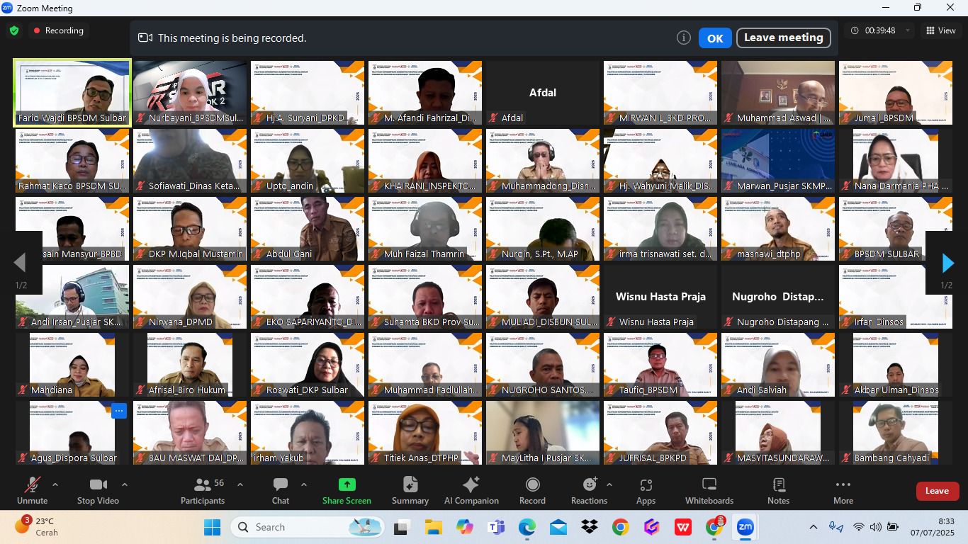 Mamuju— Badan Pengembangan Sumber Daya Manusia Daerah (BPSDMD) Provinsi Sulawesi Barat menyelenggarakan kegiatan Pengarahan Peserta Pelatihan Kepemimpinan Administrator (PKA) Angkatan I Tahun 2025, (Senin, 7 Juli 2025) sekaligus Sosialisasi Penggunaan Learning Management System (LMS) ASN Unggul secara daring melalui Zoom Meeting.