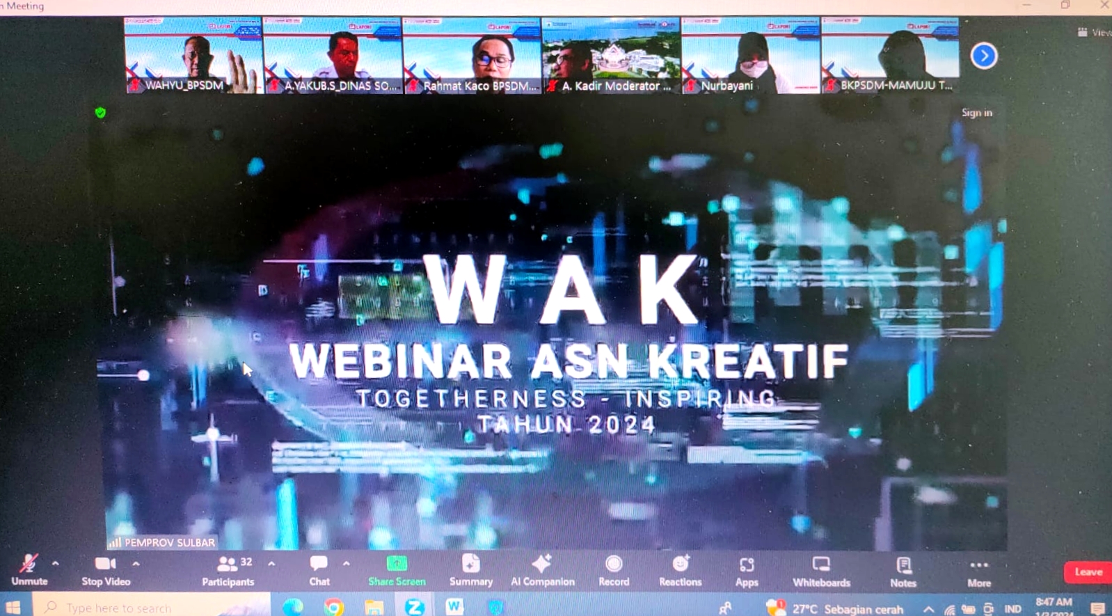 Mamuju – Branding yang dilakukan oleh BPSDM Sulbar melalui Webinar ASN Kreatif yang merupakan hasil inisiasi Pj. Gubernur Sulawesi Barat, Prof. Dr. Zudan Arif Fakhrullah, SH., MH. makin popular.