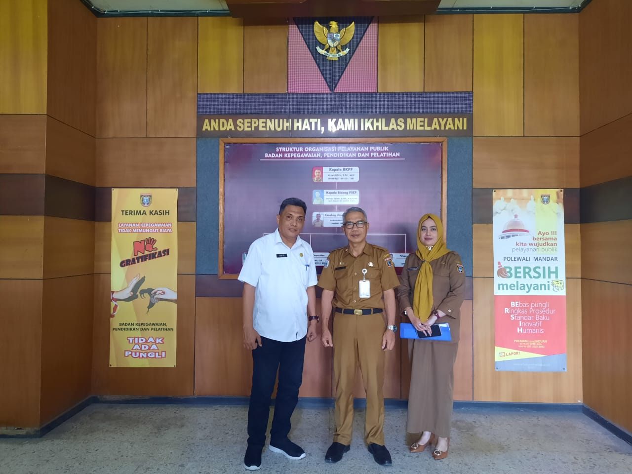 Kepala BKPP Kab. Polman, Alimuddin, S.Pd., M.Si berkomitmen untuk tetap berkoordinasi, berkolaborasi dengan BPSDM Prov. Sulbar dalam hal pengembangan kompetensi aparatur di kab. Polman dan akan bersama-sama memperbaiki kualitas pelayanan ke arah yang lebih baik. Pertemuan ini didampingi kepala bidang Diklat BKPP Polman, Andi Surya Mulya.