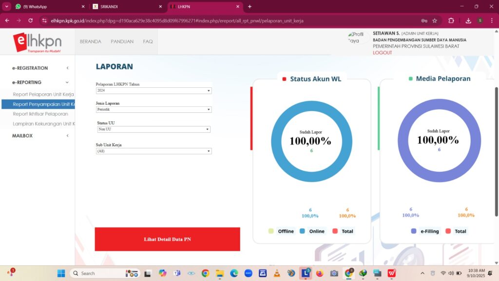 Status Akun Wajib Lapor LHKPN BPSDM 100%