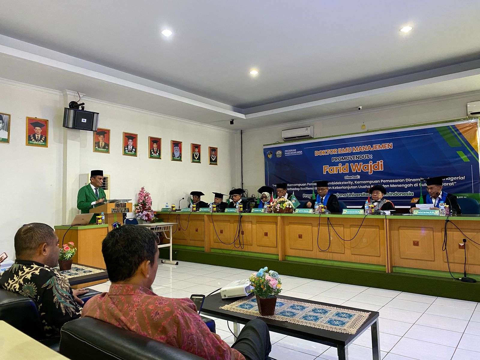 Makassar – Bertempat di ruang ujian aula lantai 3 Gedung BPPs -UMI jalan Urip Sumoharjo Makassar, Rabu tanggal 12 Pebruari 2024, jam 13.30 sd jam 15.30, telah dilaksanakan Ujian Promosi Doktor atas nama Farid Wajdi, program studi Doktor Ilmu Manajemen, bidang konsentrasi Manajemen Pemasaran dengan judul disertasi Pengaruh Kemampuan Pemasaran Ambidexterty, Kemampuan Pemasaran Dinamik, dan Managerial Agility terhadap Resiliensi Bisnis dan keberlanjutan Usaha Kecil dan Menengah di Sulawesi Barat.